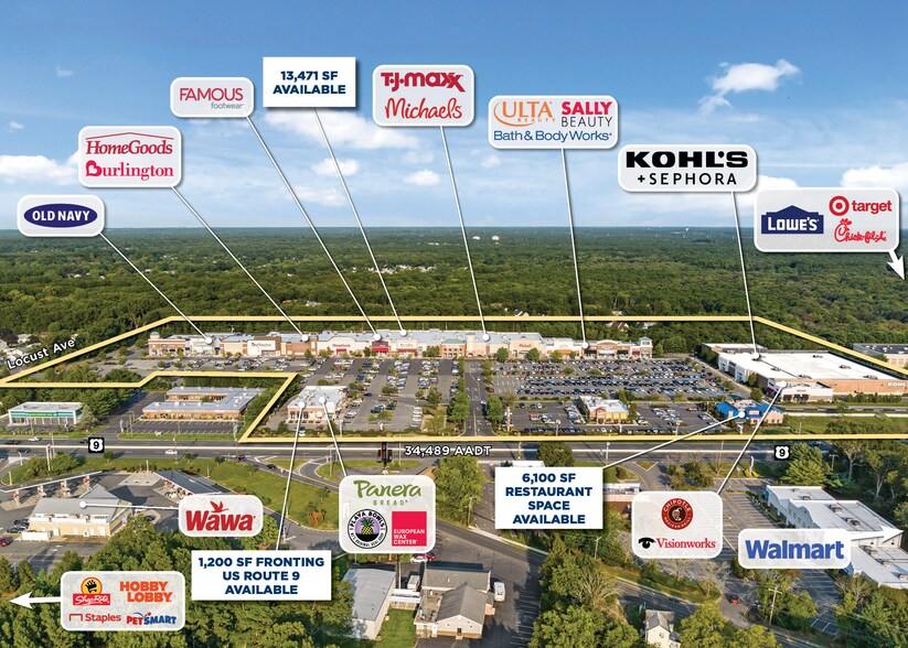 - Excellente entrée et sortie depuis l'autoroute américaine 9, Locust Ave et Lanes Mill Rd, avec servitude croisée avec Target, Lowe's et Stop & Shop