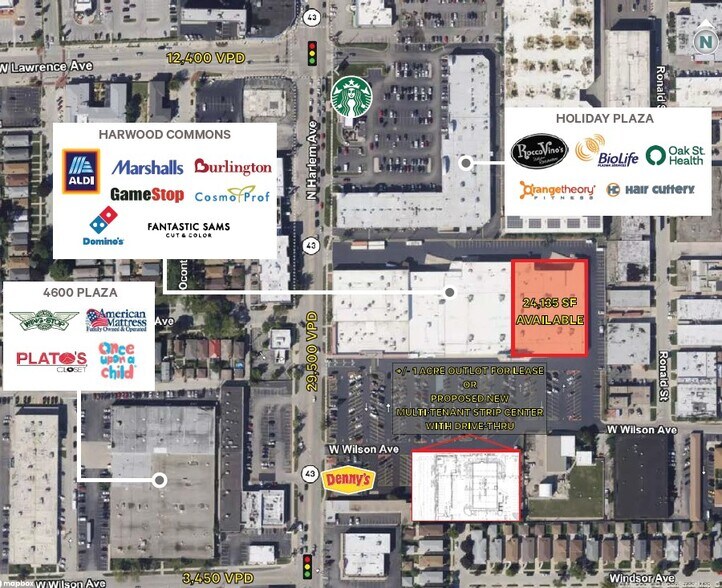 Harwood Commons 4701 N Harlem Ave Espace disponible | 2 242 m² | Local commercial | Harwood Heights, IL 60706