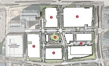Block 5 will be the final block to be developed at Madison Yards This premier Class A office and/or medical building will offer structured parking, and it has the potential for rooftop patio areas. The design is entirely flexible at this point, but a 7- to 10-story building is envisioned.