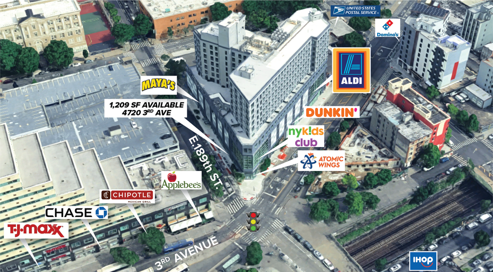 Sellable 7,772 SF lower level with 1,000 SF ground floor entrance and vertical transportation. Massive frontage overlooking Fordham Transportation Plaza. Delivery Juny 2024. At base of a 150,000 SF residential development (Fordham office campus housing). Retail anchored by Aldi supermarket, Dunkin, and Pizza Hut.