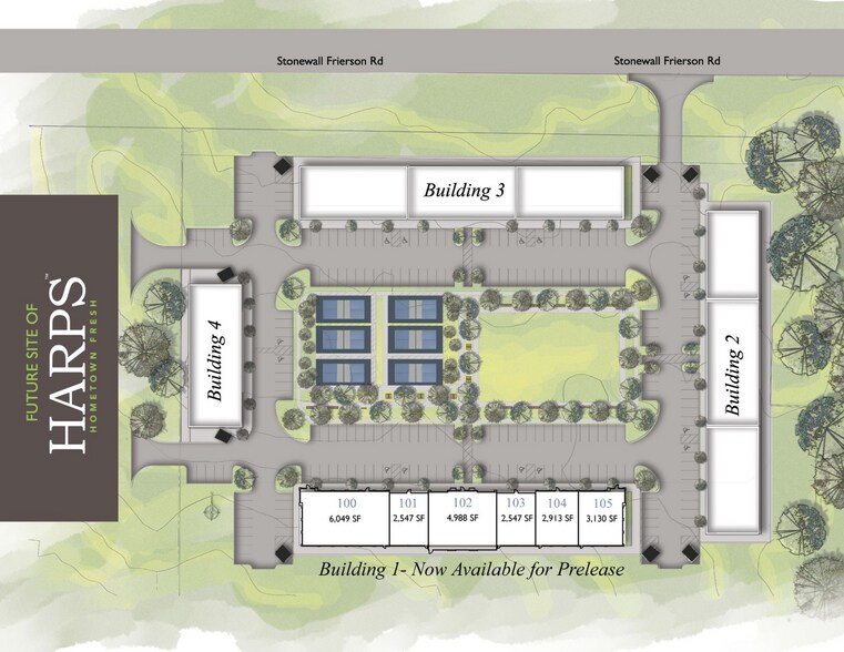 Spaces range from 1,000 to 22,174 SF offering various configurations for tenants. 4755 Stonewall-Frierson Road is the future home of Stonewall Town Center, the town’s newest mixed commercial destination for retail, dining, and office tenants. With prime frontage, abundant green space, pickleball courts, and ample parking, this property is designed to attract businesses looking to be part of Stonewall’s growing community. More than a development, Stonewall Town Center is a place where people come to eat, work, and play. Ideal for restaurants, boutiques, wellness studios, and professional offices, it offers a one-of-a-kind opportunity to serve the region’s rapidly expanding population in a high-visibility, high-traffic corridor. Spaces range from 1,000 to 22,000 SF offering various configurations for tenants. Building 1 is available for pre-leasing with completion expected Winter 2026, with Buildings 2-4 to follow. Located on Stonewall-Frierson Road, just minutes from Highway 171 and the I-49 corridor, this site sits in the heart of Stonewall’s growth corridor, surrounded by new residential developments, schools, and thriving local businesses. Adding to its appeal, the new Harps Grocery Store directly west of the development is set to open soon, ensuring consistent foot traffic. Inspired by the town’s legacy as the “Bee Gum Community,” Stonewall Town Center embodies connection, resilience, and community spirit. Tenants will benefit from a built-in customer base, easy access for residents, and a destination that combines convenience with a small-town charm that’s drawing new families and businesses to DeSoto Parish.