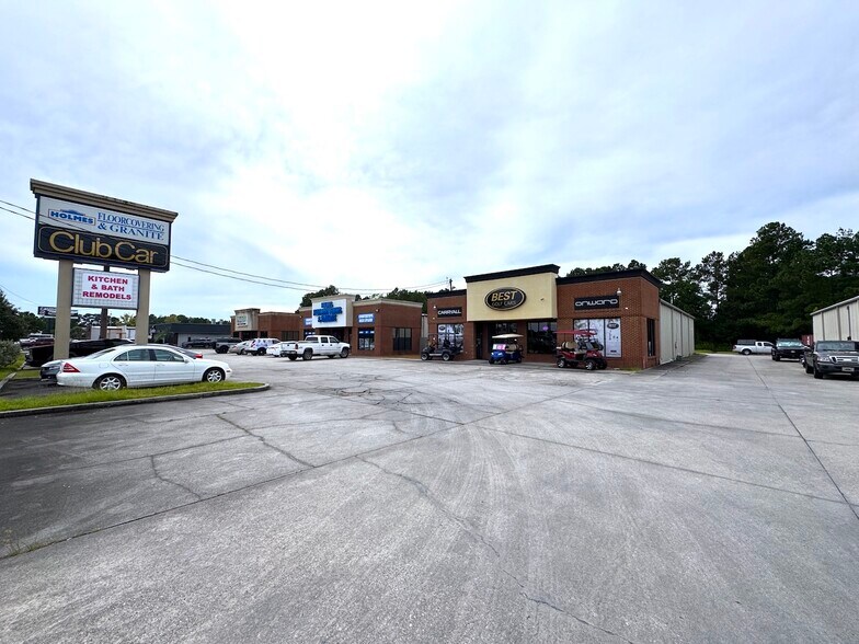 5,000 SF fully conditioned flex building with highway frontage located just south of the Market Common District on Hwy 17 Bypass. 3 Phase power. Approx. 2,500 SF of showroom area in front with drop ceiling (9ft), private office, and kitchenette/breakroom. The rear area is approx. 2,500 SF with open ceiling (15 ft at center and 12 ft eaves), three restrooms, shower, and 10x10 overhead door. Average Daily Traffic on Hwy 17 Byp is 47,700.