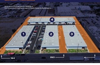 - Unit features include 16-foot clearance, new HVAC, and grade-level loading at each suite, LED lighting, new office flooring, and 24-hour security.