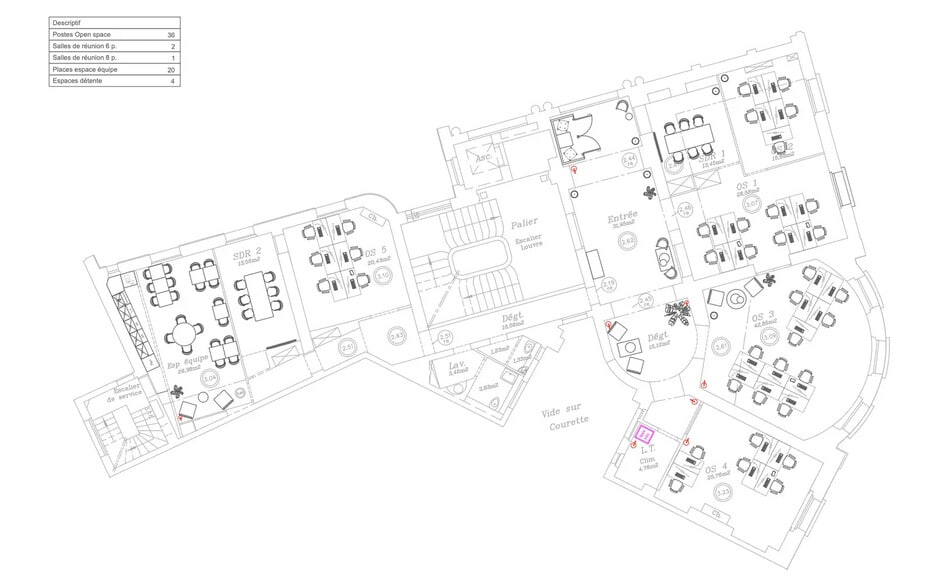 Les bureaux sont ame´nage´s afin de re´pondre aux besoins des utilisateurs en proposant: - Open space ouverts - 2 Salles de re´unions - 1 Espace cuisine - 1 Espace e´quipe Les locaux sont pre^ts a` l'emploi mais peuvent faire l'objet de modifications d'ame´nagements en fonction des besoins de l'utilisateur. Prestations JORO Aménagements - Branding - Cuisine - Espace de vie - Open Spaces - Salles de re´unions - Sanitaires Equipements - Mobilier & de´coration - Internet fibre - Machine a` cafe´ - Fournitures des consommables sanitaires - Te´le´visions - Click & play Services - Accès 24/ 7 - Interlocuteur dédié - Maintenance - Ménage En option selon besoins du preneur - Copieur / imprimante - Fontaines a` eau - Serveur de´die´ - Syste`me de vide´o surveillance Le quartier autour du 5 avenue de l’Opéra allie prestige, centralité et dynamisme. Situé entre le quartier de l’Opéra, le Palais Royal et la place Vendôme, l’actif bénéficie d’un emplacement stratégique au cœur du Paris haussmannien. Le secteur, vivant et attractif, profite de la proximité immédiate de l’Opéra Garnier, des grands magasins, de la rue de la Paix, ainsi que d’une offre très dense de commerces, restaurants, services et hôtels premium. Les rues animées du quartier et le flux constant de piétons renforcent la visibilité et l’attractivité de l’adresse. Ce positionnement exceptionnel, mêlant prestige, accessibilité et vitalité économique, en fait un lieu idéal pour les entreprises recherchant une adresse centrale, emblématique et à forte visibilité. Desserte efficace Stations à proximité : - Pyramide – Ligne 7 - Opéra – Lignes 3, 7, 8, RER A - Louvre – Rivoli – Ligne 1