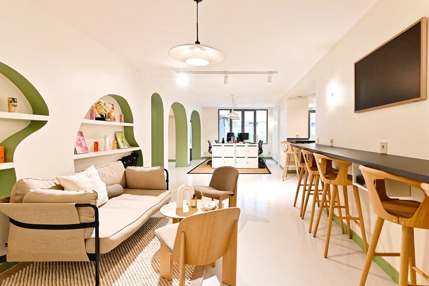 Cet espace clé en main situé en rez-de-chaussée bénéficie d’un accès direct sur une cour intérieure végétalisée qui apporte calme et luminosité au quotidien. Entièrement rénovés, les locaux accueillent trois grands open spaces regroupant au total vingt-quatre postes de travail, conçus pour favoriser la collaboration et assurer un réel confort aux équipes. L’aménagement comprend également une salle de réunion, une cuisine équipée, plusieurs sanitaires ainsi qu’une douche, permettant une utilisation fonctionnelle tout au long de la journée. La configuration Plug & Play permet une installation immédiate, avec un câblage informatique déjà en place, une imprimante-photocopieur à disposition et une machine à café intégrée. La présence d’une gardienne contribue au bon fonctionnement quotidien et renforce la sécurité des lieux. Une phone box offre un espace isolé pour les appels confidentiels, et un parking à vélo complète l’ensemble, facilitant les trajets des collaborateurs. Grâce à la verrière et aux finitions soignées, l’ensemble profite d’une atmosphère lumineuse et agréable qui renforce la qualité de travail des équipes. Le ménage bihebdomadaire assure un environnement propre et bien tenu en continu.