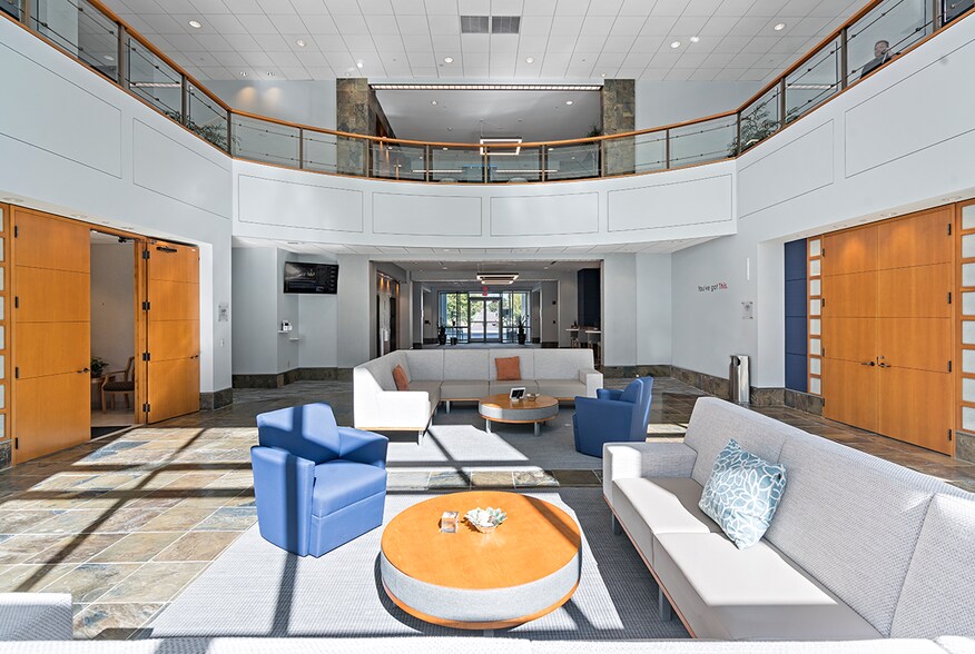 5 Walnut Grove Drive is a modern, three-story, multi-tenant office building featuring a dramatic atrium lobby with high-end finishes, prominent double door tenant entrances, an abundance of natural light from high ceilings and ample windows, and an outdoor terrace with iron furniture and umbrellas in a natural setting. 5 Walnut Grove Drive is in the Pennsylvania Lifestyle Campus and has convenient access to (11) SEPTA stops, easy access to (2) PA Turnpike entrances and routes 611 & 63.