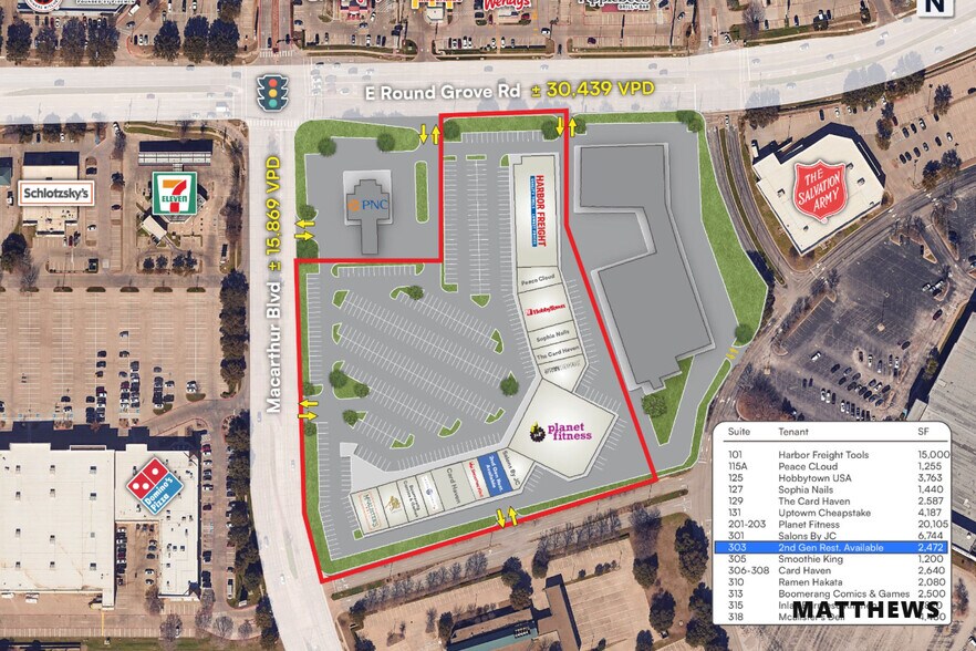 - Angle sud-est du chemin E Round Grove et du boulevard MacArthur