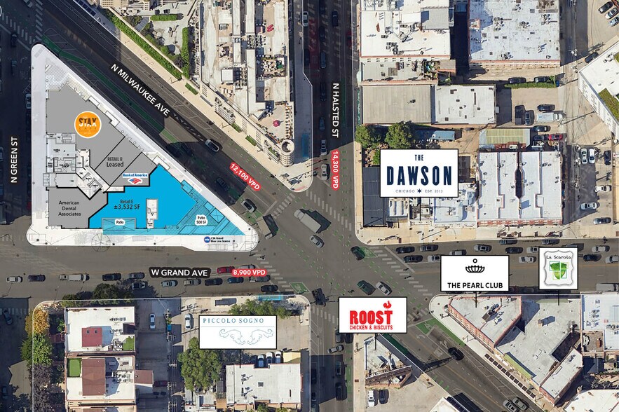 - Located at the highly visible and busy intersection of Milwaukee/Grand/Halsted