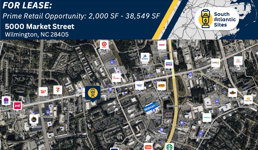 5000 Market Street, Wilmington, NC 5000 Market St Local commercial | 179–3 761 m² | À louer | Wilmington, NC 28405