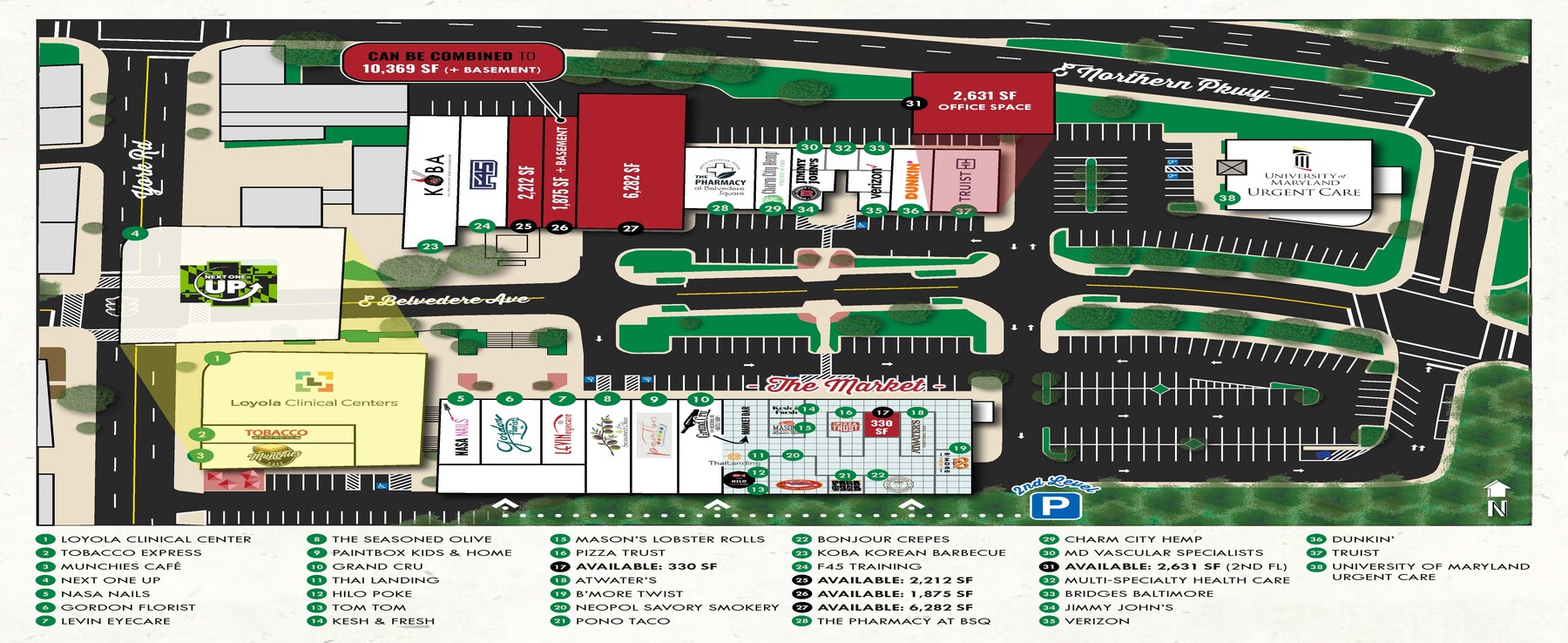 Belvedere Square Shopping Center 510-600 E Belvedere Ave Espace disponible | 31–1 238 m² | Baltimore, MD 21212