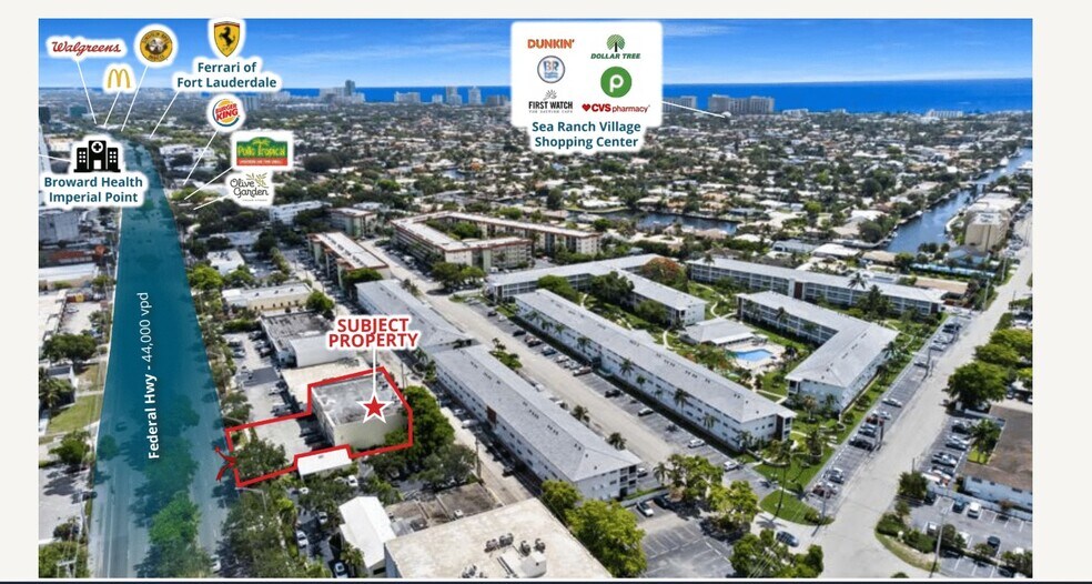 Shops at Coral Ridge is a well-positioned neighborhood retail center located along North Federal Highway (US-1), one of Fort Lauderdale’s most heavily traveled commercial corridors. The property benefits from exceptional visibility, strong daily traffic counts, and direct frontage on a major north–south arterial connecting Fort Lauderdale, Oakland Park, and Pompano Beach. The center features a mix of established service-oriented and retail tenants, creating consistent foot traffic and long-term tenancy stability. Available suites offer flexible layouts ideal for a wide range of uses including retail, medical, professional office, boutique fitness, and personal services. With prominent signage opportunities, ample on-site parking, and convenient ingress/egress, Coral Ridge Plaza provides tenants with a highly functional and accessible location. The property is surrounded by dense residential neighborhoods, affluent Coral Ridge demographics, and nearby national retailers, restaurants, and essential services. This location offers an excellent opportunity for tenants seeking strong exposure, ease of access, and proximity to both established residential communities and growing commercial demand along the Federal Highway corridor.