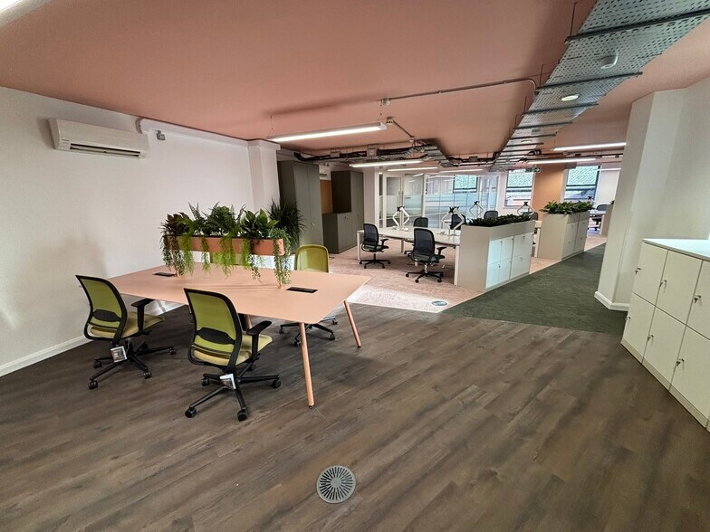 This fifth floor office suite The offices provide modern open plan office accommodation. The floors benefit from the following specification, VRV heating and cooling. 100% electric building. LED strip lighting and excellent natural light, Communal building shower facilities, cleaned and maintained under the service charge, Partly fitted to include glazed meeting rooms and kitchen provisions, private roof terrace on the 5th floor with Secure internal bike storage.