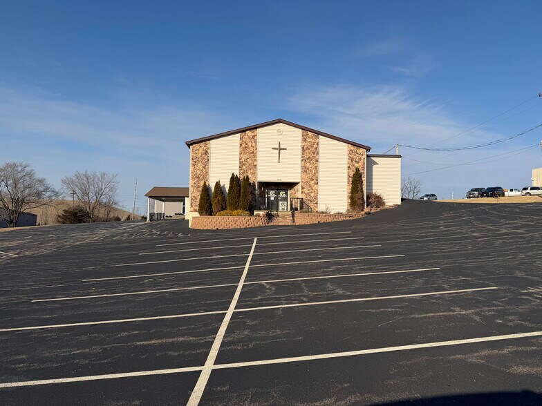 Large church building in excellent location on a very busy street. Approximately 1.44 acres m/l with 7680 sq ft bldg. and large parking lot. Building features sanctuary with vaulted ceiling and stage, multiple offices, classrooms, kitchen area, banquet area and multiple bathrooms. Side entry has covered drop off area. Building is in great condition and would lend itself to many other uses
