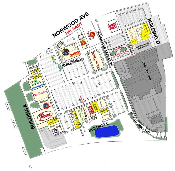 Espace commercial à louer dans le Gateway Town Center, propriété de Gator Investments, à Jacksonville, en Floride. Ce centre d'épicerie est très visible, situé juste à l'est de l'I-95 et est accessible depuis deux sorties d'autoroute. Le Gateway Town Center abrite le terminal public de la Jacksonville Transportation Authority, à l'intersection de la 44e rue ouest et de l'avenue Norwood dans le comté de Duval. Parmi les principaux locataires figurent Winn Dixie, Family Dollar, Rose's Discount Store, Rainbow Clothing, Hibbett Sports, Five Below et Burlington, Dollar Tree étant bientôt disponible. Les locataires nationaux incluent Truist, Footlocker, USPS et Humana. Le réaménagement de certaines parties de la propriété est en cours : des parcelles ancrées, en ligne et indépendantes sont disponibles, et elles seront subdivisées.