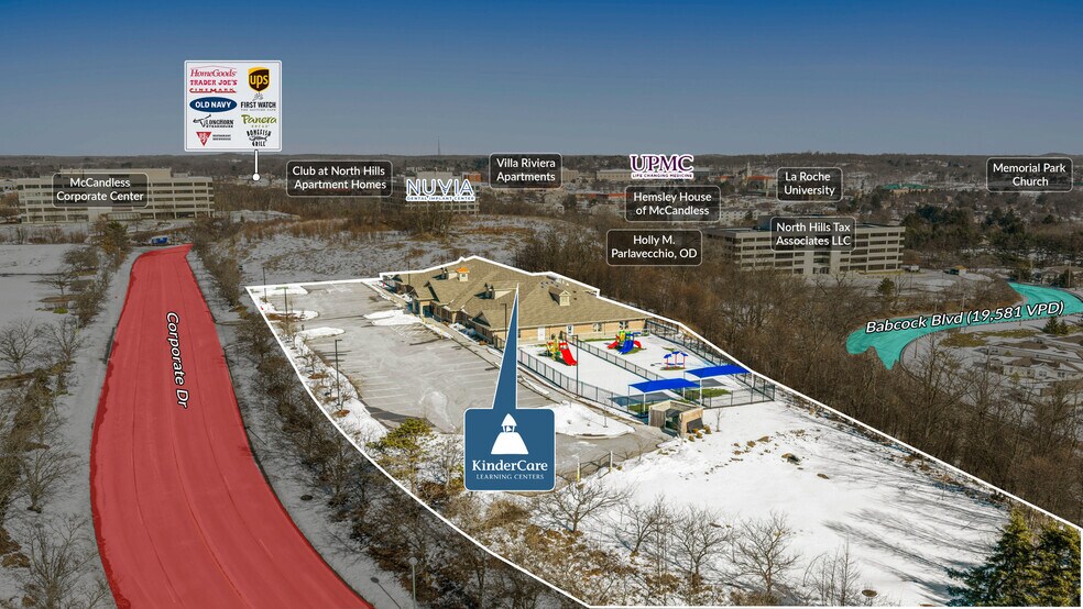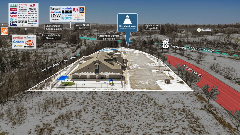 Sands Investment Group is pleased to exclusively offer for sale the 11,990 SF KinderCare located at 5400 Corporate Drive in Pittsburgh, PA. KinderCare is the largest provider of early education and child care in the U.S., operating more than 2,700 centers nationwide. The center is strategically positioned approximately 10 miles from downtown Pittsburgh and within a 30-minute drive of Pittsburgh International Airport (PIT), offering strong accessibility, surrounding population density, and a compelling investment opportunity backed by an established national tenant.