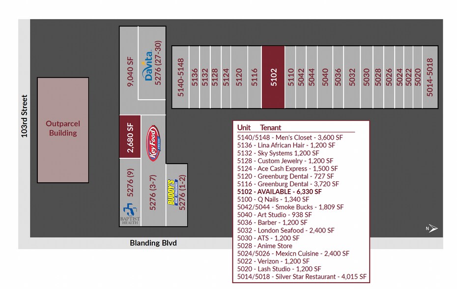 Blanding Town Center 5432 Blanding Blvd Espace disponible | 588 m² | Local commercial | Jacksonville, FL 32210
