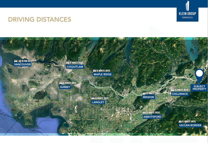 - Just 35 minutes to the Canada–USA border and 75 minutes to Vancouver, ideal for logistics, manufacturing, or distribution users.