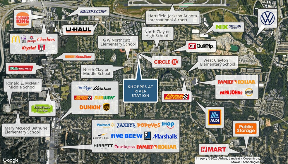 Suite 600–800 at Shoppes at River Station presents a rare opportunity to secure a large-format retail space of approximately 8,125 square feet within a high-traffic, strategically located neighborhood center in South Fulton. This space is ideally positioned for operators seeking to establish a destination presence while benefiting from strong daily traffic, excellent visibility, and a growing surrounding population base. Large contiguous spaces of this size are limited within the immediate trade area, particularly within well-located centers that offer strong accessibility and co-tenancy synergy. This creates a unique opportunity for a concept that can anchor the center and drive consistent customer traffic, while also benefiting from the existing flow of visitors generated by surrounding businesses. The surrounding market demonstrates a clear gap for experiential retail, wellness-focused concepts, fitness users, and service-oriented operators that require additional square footage to deliver their full offering. There is also strong demand for concepts that can serve both the local residential population and the significant daytime workforce driven by nearby employment centers and the airport. The scale of Suite 600–800 allows for a wide range of flexible configurations, supporting uses that require open layouts, specialized buildouts, or a combination of customer-facing and operational space. This flexibility enables operators to design a space that aligns with their brand identity while maximizing functionality and customer experience. The center’s location along W Fayetteville Road provides strong exposure to consistent vehicle traffic, ensuring that businesses within this space benefit from continuous brand visibility. The accessibility of the site further enhances its appeal, making it convenient for customers traveling from surrounding neighborhoods as well as those commuting through the area. Void analysis highlights a lack of modern, large-format concepts that offer an elevated experience compared to existing retail options in the trade area. This presents an opportunity for the right operator to establish a dominant position within the market, capturing both immediate demand and long-term growth as the area continues to develop. The surrounding demographic profile supports a strong customer base with a mix of residents and employees, creating consistent demand throughout the day and week. Additionally, the proximity to Hartsfield-Jackson Airport introduces a broader regional influence, supporting businesses that can benefit from transient and destination-driven traffic. Suite 600–800 offers the opportunity to become a key driver of activity within the center, benefiting from both its size and its strategic positioning. For operators seeking a high-impact location with the ability to scale and create a destination experience, this space represents one of the most compelling opportunities in the South Fulton market.