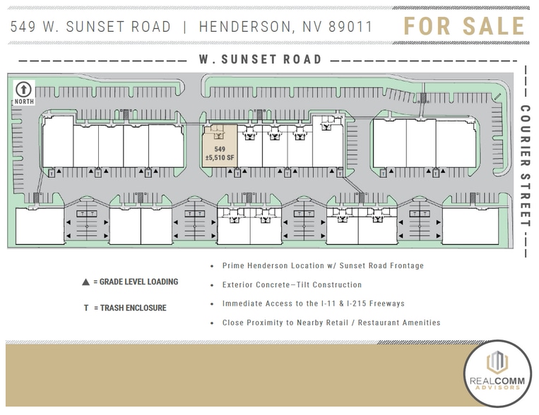 5,510 SF Building w/ Sunset Road Frontage 549 W Sunset Rd Industriel/Logistique 512 m² À vendre Henderson, NV 89011 1 454 503 € (2 841,40 €/m²)