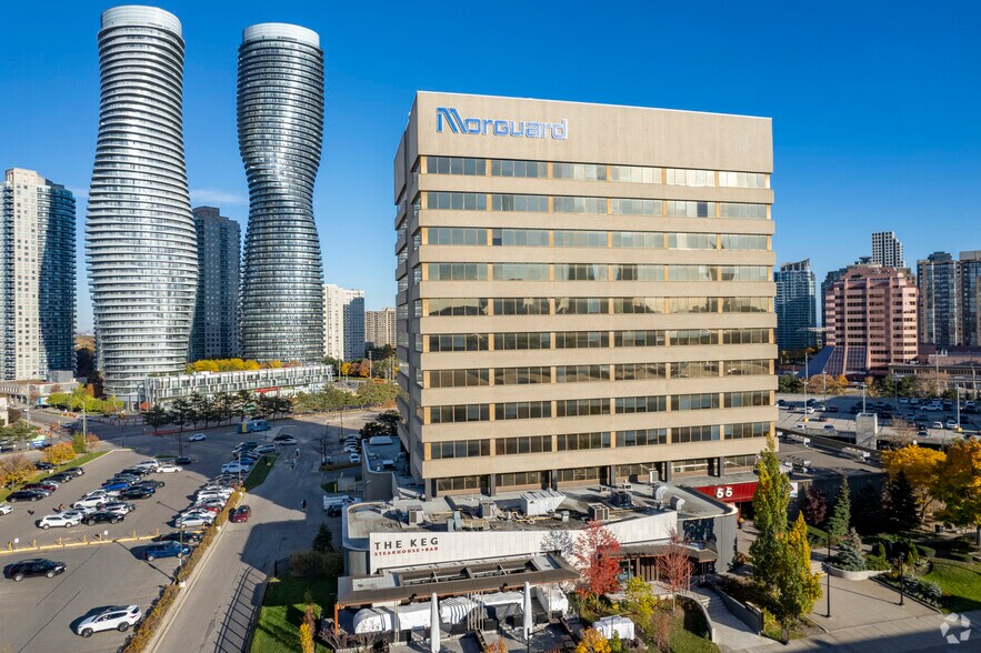 55 City Centre Drive is a prominent 11-story office tower situated in the heart of Mississauga’s thriving City Centre district. With direct proximity to Square One Shopping Centre and the central transit hub, this location offers exceptional convenience for commuting and client access. The property has achieved multiple industry certifications including BOMA BEST Platinum and WiredScore Gold, ensuring modern standards for sustainability and connectivity. The building offers controlled access, 24-hour security, closed-circuit monitoring, and fiber optic capability. Tenants enjoy concierge services and a range of urban amenities within walking distance, including cultural venues like the Living Arts Centre, the Mississauga Central Library, and fitness facilities. Its position at Hurontario Street (Highway 10) and Burnhamthorpe Road provides seamless connectivity to major highways—403, 401, 407, 410, 427, and the QEW—as well as convenient access to downtown Toronto and Pearson International Airport.