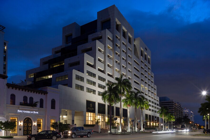 50 Biltmore est un point de repère à Coral Gables. Ses caractéristiques intérieures comprennent des murs en travertin italien avec des accents de marbre et de granit, des cabines d'ascenseur en noyer bruni et des finitions en pierre polie et en métal brossé dans le hall d'entrée. Le bâtiment occupe la quasi-totalité du site, à l'exception des terrasses situées le long des façades nord et ouest des rues. Une allée circulaire et une fontaine marquent l'entrée principale du bâtiment, flanquée de deux impressionnants lions en bronze coulé. Une entrée latérale au niveau du terrazzo abrite une petite fontaine. La configuration pyramidale permet à la plupart des suites de disposer de leur propre balcon, avec des terrasses de taille conférence pour les grands bureaux.