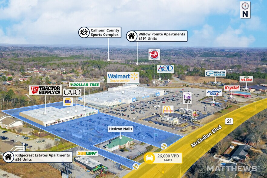 - Positioned fronting major, regional traffic corridor - McClellan Blvd (AL-21)