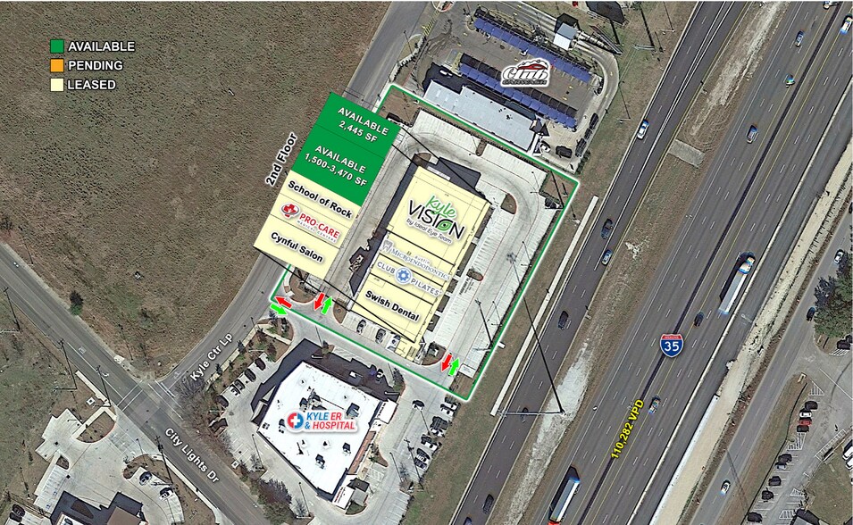 Resolut is pleased to present in-line retail/ office space at the Parkway Plaza, a multi-tenant mixed-use strip center in Kyle, Texas. The center is ideally located at the northwest corner of Interstate 35 and City Lights Drive, visible to more than 100,000 vehicles per day. Other tenants in the strip include medical offices, salons, private schools, and a local Pilates studio. Surrounding traffic generators include Walmart Supercenter, Target, Ross Stores, Kohl's, Walgreens, Petco, and more. Inquire today to see how your business will thrive within the Parkway Plaza.