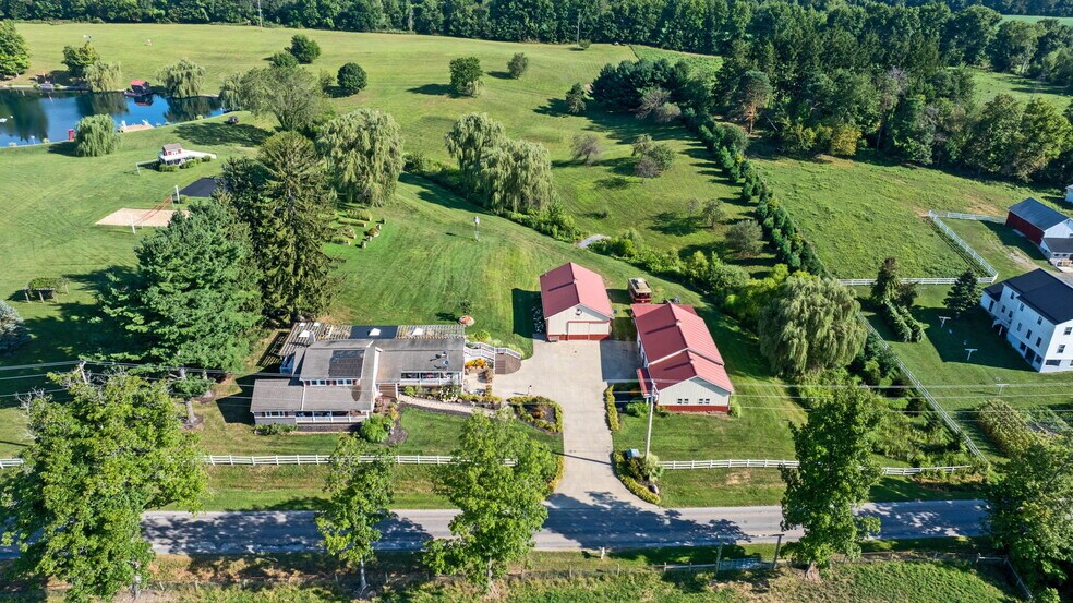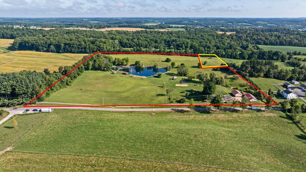 3CRE is pleased to present the exceptional commercial space available at 5643 Yankee Street, ideally situated on a high-visibility street in Fredericktown, Ohio. Set on 21.98 acres, this unique estate is ideally located 50 minutes from downtown Columbus and 30 minutes from Polaris and the Johnsville Chip Plant. The main home features 4 bedrooms with cedar-lined closets, 3.5 baths, multiple living and dining spaces, a mudroom, laundry, and a full basement with walk-in vault. The property includes a 3-car garage, workshop, and one-room cabin, plus a stocked blue lake with a floating bridge to a private island, fruit orchard, garden center, sauna, recreation/golf area, and camping space.