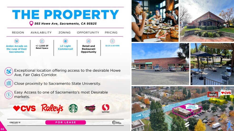 The Howe Avenue Corridor in Sacramento offers a highly attractive environment for businesses due to its central location, strong connectivity, and diverse economic base. Positioned between key regional freeways, including U.S. Highway 50 and Interstate 80, the corridor provides convenient access to downtown Sacramento, East Sacramento, Arden-Arcade, and the greater metropolitan area. This accessibility supports efficient employee commutes, customer reach, and logistical operations. The corridor benefits from a well-established mix of office, retail, medical, and service-oriented businesses, creating a dynamic commercial ecosystem. Nearby amenities such as shopping centers, restaurants, financial institutions, and professional services enhance daily convenience for employees and clients alike. Proximity to major employment centers, hospitals, and government offices further strengthens the corridor’s business appeal. Howe Avenue also offers a diverse and stable customer base drawn from surrounding residential neighborhoods, colleges, and employment hubs. The area’s ongoing reinvestment and redevelopment efforts contribute to improving infrastructure, streetscapes, and property values, making it increasingly attractive for long-term business growth. Combined with Sacramento’s business-friendly climate, competitive operating costs, and access to a skilled regional workforce, the Howe Avenue Corridor stands out as a strategic and desirable location for businesses seeking visibility, accessibility, and sustained opportunity. The surrounding area’s strong concentration of students and high-income earners creates a uniquely advantageous market for businesses. A heavy student demographic provides a steady, recurring customer base with consistent daily activity. Students drive demand for food and beverage, retail, personal services, technology, fitness, entertainment, and flexible work or study spaces. Their presence also fuels extended hours of activity, increased foot traffic, and strong adoption of new brands, digital services, and trends, making the location ideal for businesses seeking engagement and visibility. “At the same time, the area’s high-income earners add significant purchasing power and long-term stability to the market. These consumers support premium goods and services, professional offerings, healthcare, dining, and lifestyle-oriented businesses. Higher disposable incomes translate into larger average transaction values, customer loyalty, and sustained demand even during economic fluctuations. Together, students and high-income professionals create a balanced and resilient customer base. Businesses benefit from both high transaction volume and strong spending capacity, as well as demand that spans weekdays, evenings, and weekends. This demographic mix supports a wide range of business models—from value-driven concepts to upscale offerings—while providing growth potential, brand exposure, and long-term revenue sustainability.