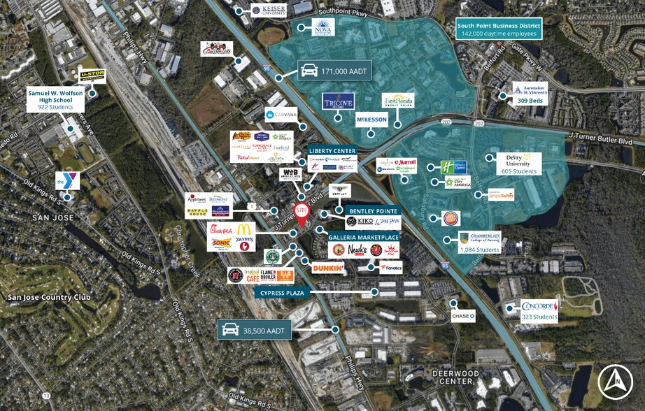 » 3,082 SF second generation restaurant with drive-thru » Ease of access to I-95 (AADT: 171,000) and J Turner Butler (AADT: 47,000) » Excellent visibility and dedicated pylon sign » Strong daytime population of 217,543 within a five mile radius » Average household income of $103,388 within a five mile radius