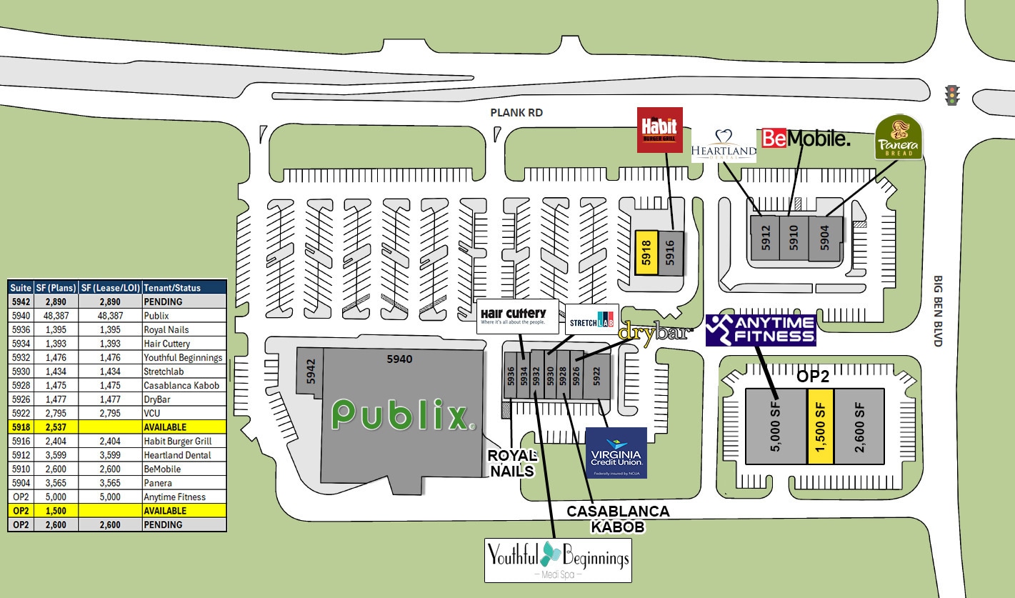 Chancellor Crossing is a newly developed Publix-anchored retail center located along Plank Road (Route 3) in Fredericksburg, Virginia. This high-visibility property offers small shop spaces for lease within a dynamic, high-growth residential corridor. The center benefits from a combined traffic count of approximately 46,000 vehicles per day, ensuring strong exposure for tenants. The property is positioned across from Harrison Crossing, a major shopping destination anchored by Giant, Home Depot, and Petco, and is adjacent to Riverbend High School, one of Virginia’s largest high schools. Tenants at Chancellor Crossing include national and regional brands such as Panera Bread, The Habit Burger Grill, Anytime Fitness, Virginia Credit Union, Hair Cuttery, Drybar, and StretchLab, creating a strong co-tenancy mix. With convenient access to major roadways and a location within a thriving commercial belt, Chancellor Crossing offers an exceptional opportunity for retailers seeking to establish a presence in a rapidly expanding market. The site plan accommodates a variety of retail uses, supported by ample parking and modern infrastructure.