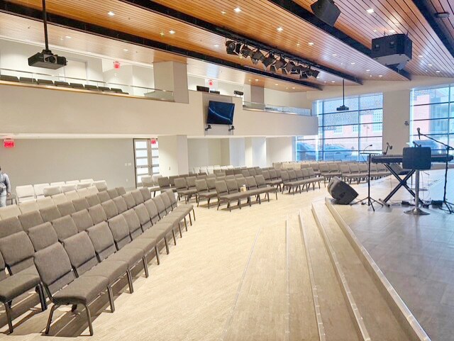 3,850 ± SF shared church sanctuary seat approximately 350 people.