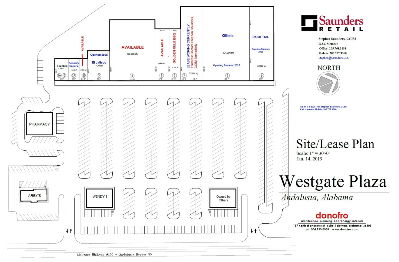 20,000 SF space is available for Jr Anchor, looking for a tertiary market that pulls from far outside the general area. County Seat that has beach Traffic in front of the center and draws from 30 miles outside of town, with a traffic-light entrance. Ready to remodel the entire shopping center and bring new national retail users to the market. Space can be either 10,000 sf, 15,000 sf or can be extended to 30,000Sf for another Anchor tenant. to add to Ollie's. Ollies and Dollar Tree is currently under construction, and renovations are going on now; join us for this much-needed redevelopment on the main artery in this Andalusia, Alabama Market.