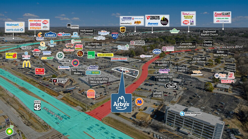 Sands Investment Group is pleased to exclusively offer for sale the 3,104 SF Arby's located at 601 Old Hickory Boulevard in Jackson, TN. This offering represents a true passive investment, with the tenant responsible for 100% of repairs and maintenance, including the roof, structure, HVAC, taxes, and insurance making it ideal for out-of-state investors or 1031 exchange buyers seeking hands-off ownership. With minimal landlord responsibilities and a nationally recognized tenant, this asset provides a stable income stream and a strong long-term investment opportunity.