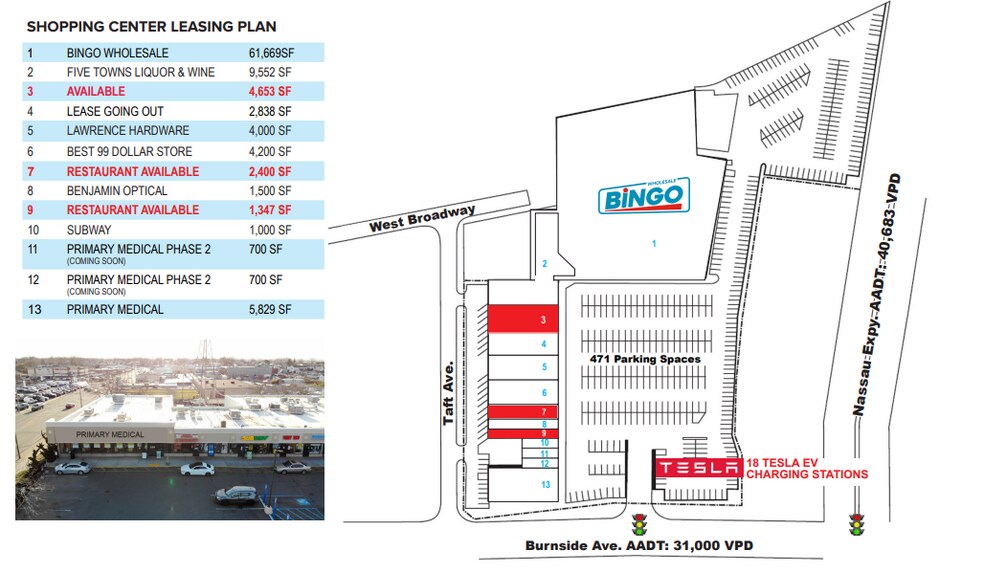Located in the Five Towns area, a heavily traveled commuter route with a wide trade area.