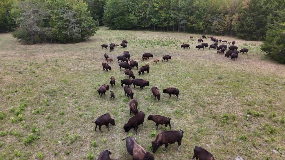 - Cerf de Virginie, dinde, l'un des plus grands troupeaux de cerfs rouges de l'État, pêche et environ 120 buffles