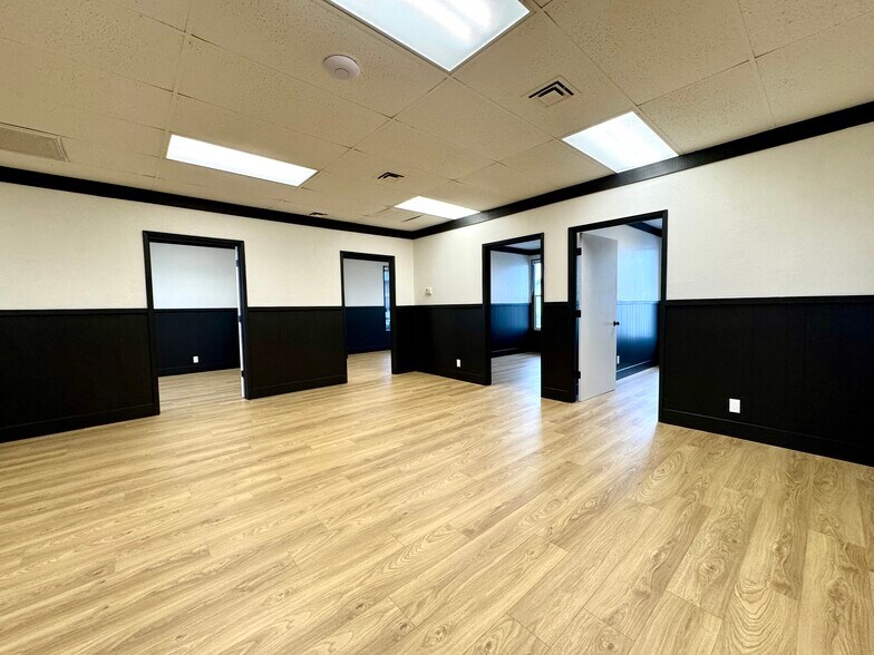 Beautifully updated upstairs office space featuring 4 private offices, a conference room, a break room, and a spacious open work area designed for both functionality and comfort. Large windows fill the space with natural light, while modern finishes--including LVP faux wood flooring, butcher block countertops, and energy-efficient LED lighting--create a clean and contemporary feel. Located within a gated office complex, the suite offers access to updated common restrooms that are professionally maintained by the landlord. Please note access is stair-only. Internet service is included.