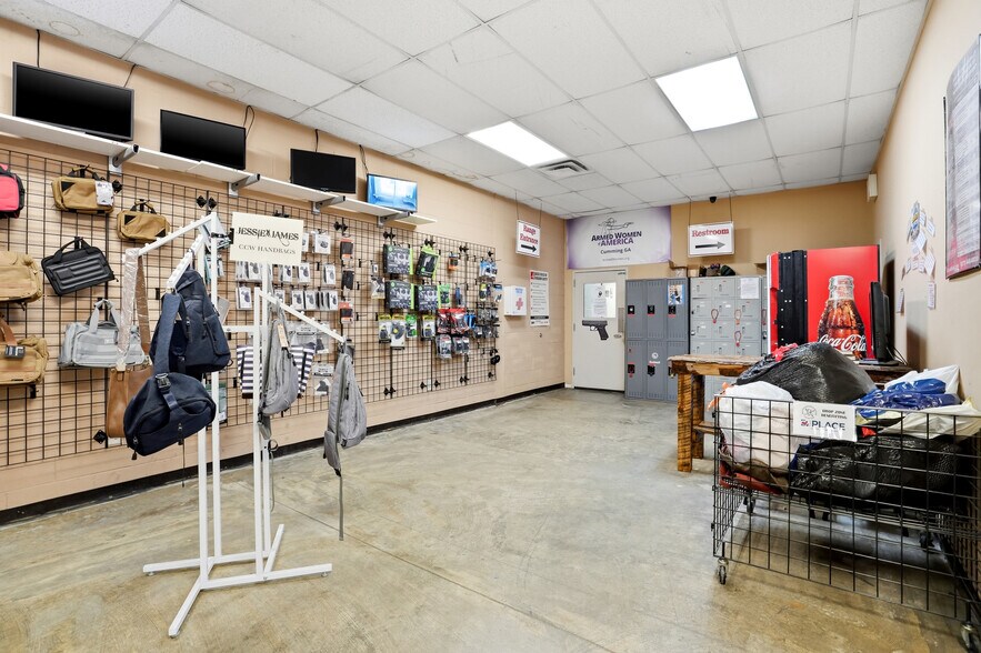 À vendre, 8 100 pieds carrés carrés sur une zone industrielle légère de 4,7 acres et plus, à quelques minutes de la sortie 13 de la GA 400 Hwy 141 à Cumming. L'établissement abrite actuellement une vente d'armes et un stand de tir intérieur. La façade en brique, la construction en blocs de béton et à ossature d'acier est transparente de 12'5 pouces et sans colonne. Il y a une zone avant de 3 000 SF+- avec une salle d'exposition, un bureau, une salle de travail, une salle de formation et des toilettes, ainsi qu'un stand de tir de 5 100 SF+- qui peut être converti en espace de magasin, déjà équipé d'un service 100 % AC et d'un service triphasé de 280 ampères. Une porte enroulable au niveau du sol peut être installée pour accéder à l'atelier. Les 4,7 acres boisés comprennent une zone défrichée d'un demi-acre pouvant être utilisée pour des entrepôts extérieurs ou un bâtiment supplémentaire. Le vendeur est prêt à placer des fonds sous séquestre pour le retrait de toutes les infrastructures du stand de tir après la fermeture.