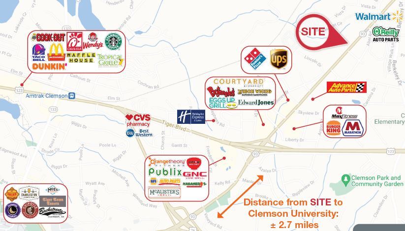 3.944 Acres on busy Old Greenville Hwy. Front two parcels would make a great QSR. Several thousand students live in nearby apartments .Across from Neighborhood Walmart. Located on Hwy 93 between 123 and Central.