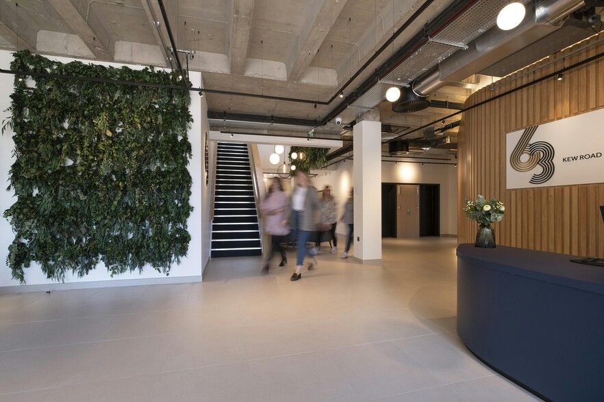 63 Kew Road has undergone a comprehensive sustainable refurbishment to provide contemporary, energy efficient, high quality office accommodation. Its commanding position on the A316, at the intersection of Kew Road and Twickenham Road, makes it both highly accessible and highly visible for branding opportunities. It is less than 150 metres walk to Richmond station providing mainline, Underground (District Line) and Overground services to central London.