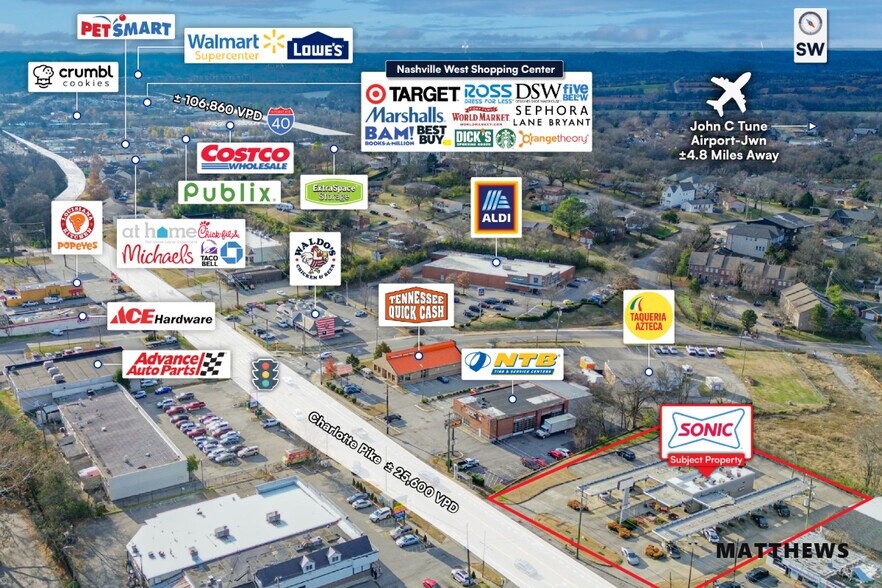 - Premier West Nashville Location – Located on Charlotte Pike, one of Nashville’s most sought after thoroughfares, seeing over ±25,000 vehicles per day.