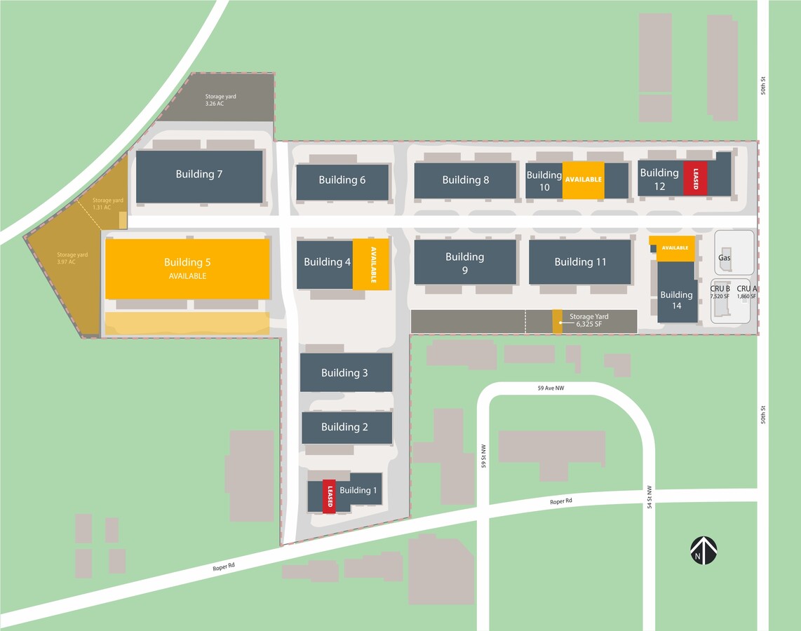 | 1er étage – 6442-6468 Roper Road | 4 389 – 24 619 m² | Négociable | Sur demande Sur demande Sur demande Sur demande | Industriel/Logistique | - | 01/06/2027 |