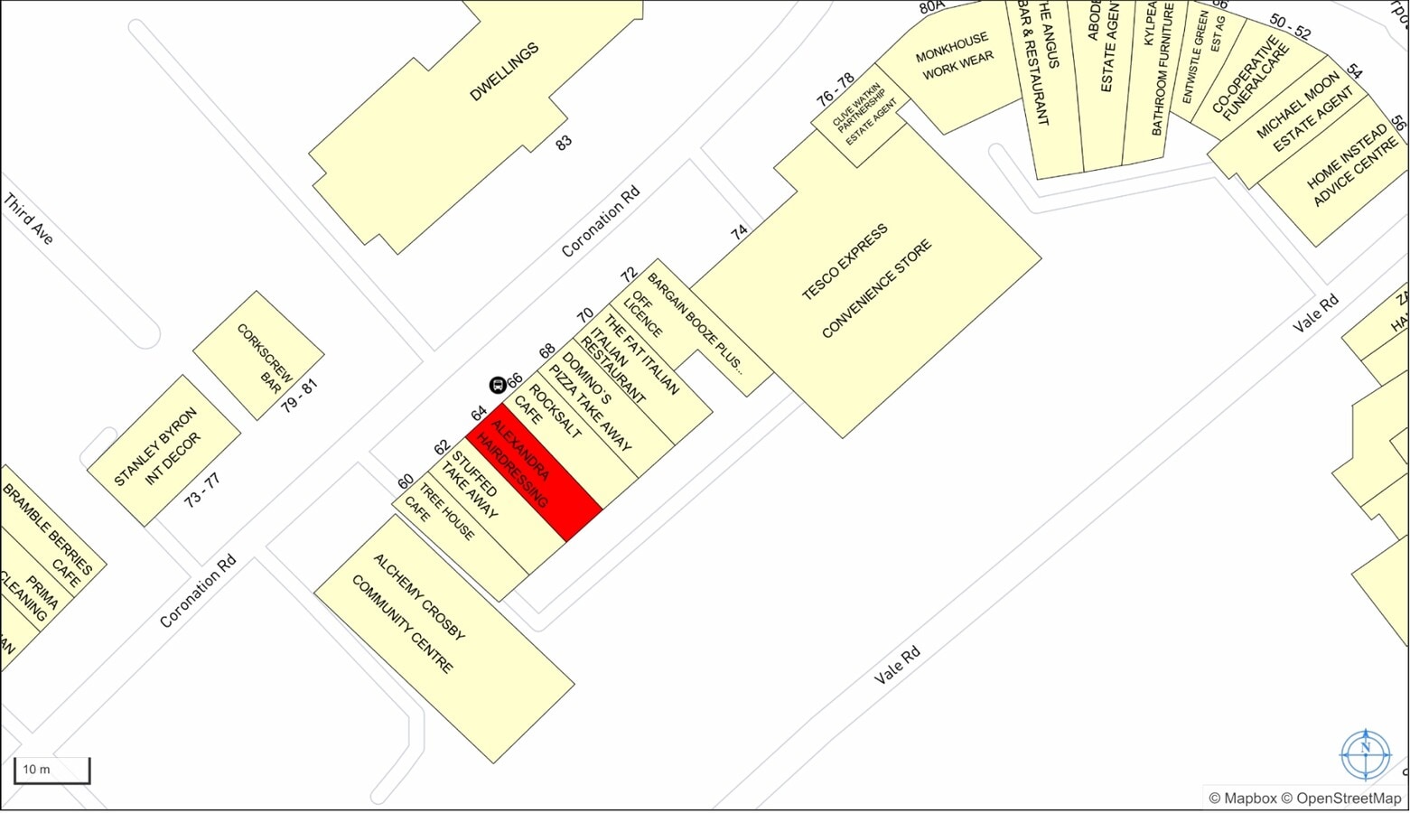 Ground floor former hair salon with ancillary accommodation at the rear and access to first floor residential premises either 1 or 2 bedrooms benefitting from independent access off Coronation Road. The premises benefit from 3 Phase Electricity Supply, gas supply and the usual services with some alterations ready for immediate occupation.