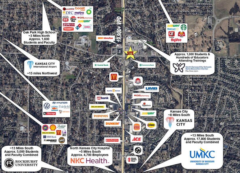 * Easy Access to Larger Kansas City Regional Consumer Base (Approx. 8 Miles, 2.2 Million Residents), as well as Being Located within the Heart of Gladstone, Surrounded by Many Rooftops & Apartment Complexes,Providing Stable Daytime Traffic