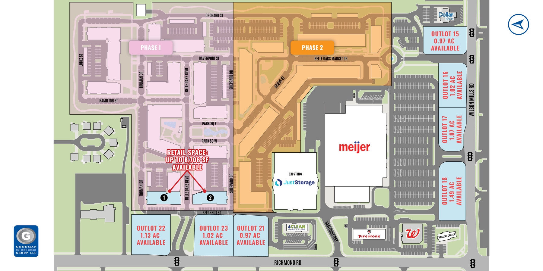 Belle Oaks Marketplace residents will experience Class-A living accommodations within a walkable, live-work-play environment that is supported by best-in-class local retailers, restaurants, and daily-needs services Upon completion, Belle Oaks Marketplace will be a mixed-use pedestrian-friendly environment with 791 apartment units with approximately 315,000 SF of retail A new Meijer store is now open and there is ground floor retail available for lease Ground Floor Retail: Building 1: Up to 8,484 SF Building 2: Up to 8,706 SF
