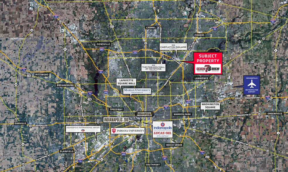 Bellagio Real Estate Partners, LLC is pleased to present the opportunity to acquire a brand-new construction single-tenant 7 Brew Coffee absolute NNN Ground Lease. The subject property is located at 6411 E. 82nd Street in Indianapolis, IN. This 510 square-foot building, situated on 0.69 acres and features a 20-year ground lease with 2% annual escalations including during the multiple lease renewal terms. The property is located on a very busy 82nd Street corridor (over 45,000 VDP along 82nd St) within the Castleton submarket of Indianapolis. It is also on the morning side of traffic, at a strategic signalized intersection just steps away from Interstate 69. There are also 9 hotels within ½ mile of the property as well as Community Hospital North, a major 361 bed hospital that sees over 2.1 million visitors a year. Just west of the subject property is Castleton Square Mall (over 560,000 SF) as well as Simon Fashion Mall (over 660,000 SF). Nearby key retailers include: Lowe’s, Best Buy, Costco, Taco Bell, Raising Canes, City Barbeque, Olive Garden, McDonald’s,