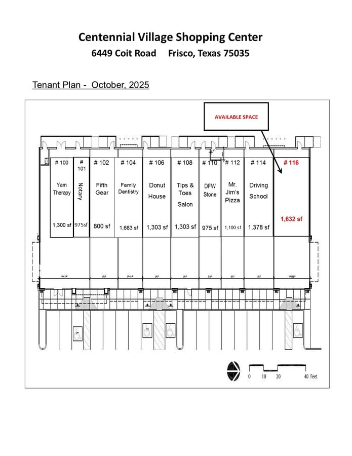 Centennial Village Shopping Center 6449-6549 Coit Rd Espace disponible | 152 m² | Local commercial | Frisco, TX 75035