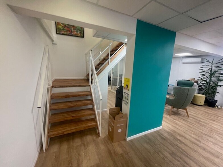 - Rez-de-chaussée : 3 bureaux, salle de réunion, 2 phones box, cuisine et sanitaire.