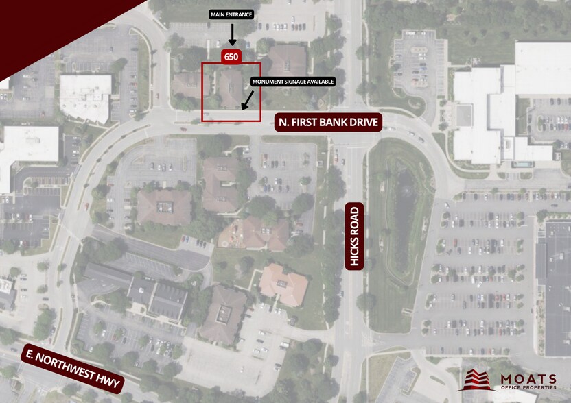 650 N. First Bank Drive presents a rare opportunity to acquire a strategically positioned suburban office asset in the heart of Palatine’s established corporate corridor. Located just east of Illinois Route 53, the property benefits from immediate regional connectivity and strong accessibility to the greater Northwest suburban Chicago market.