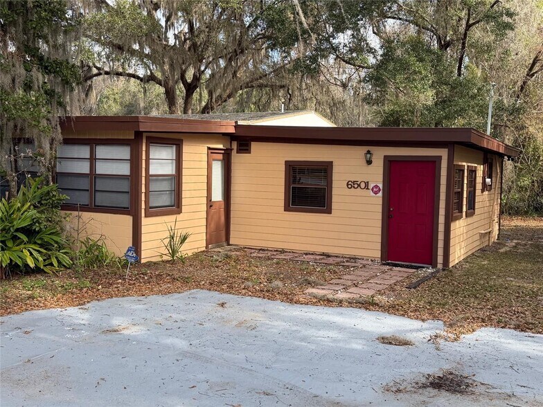 Building for lease on the campus of the Florida School of Massage. Perfect for office or educational/training use. Large open space with a smaller area that could be office or training area, enclosed porch and restroom. Plenty of parking and easy access off of US 441.